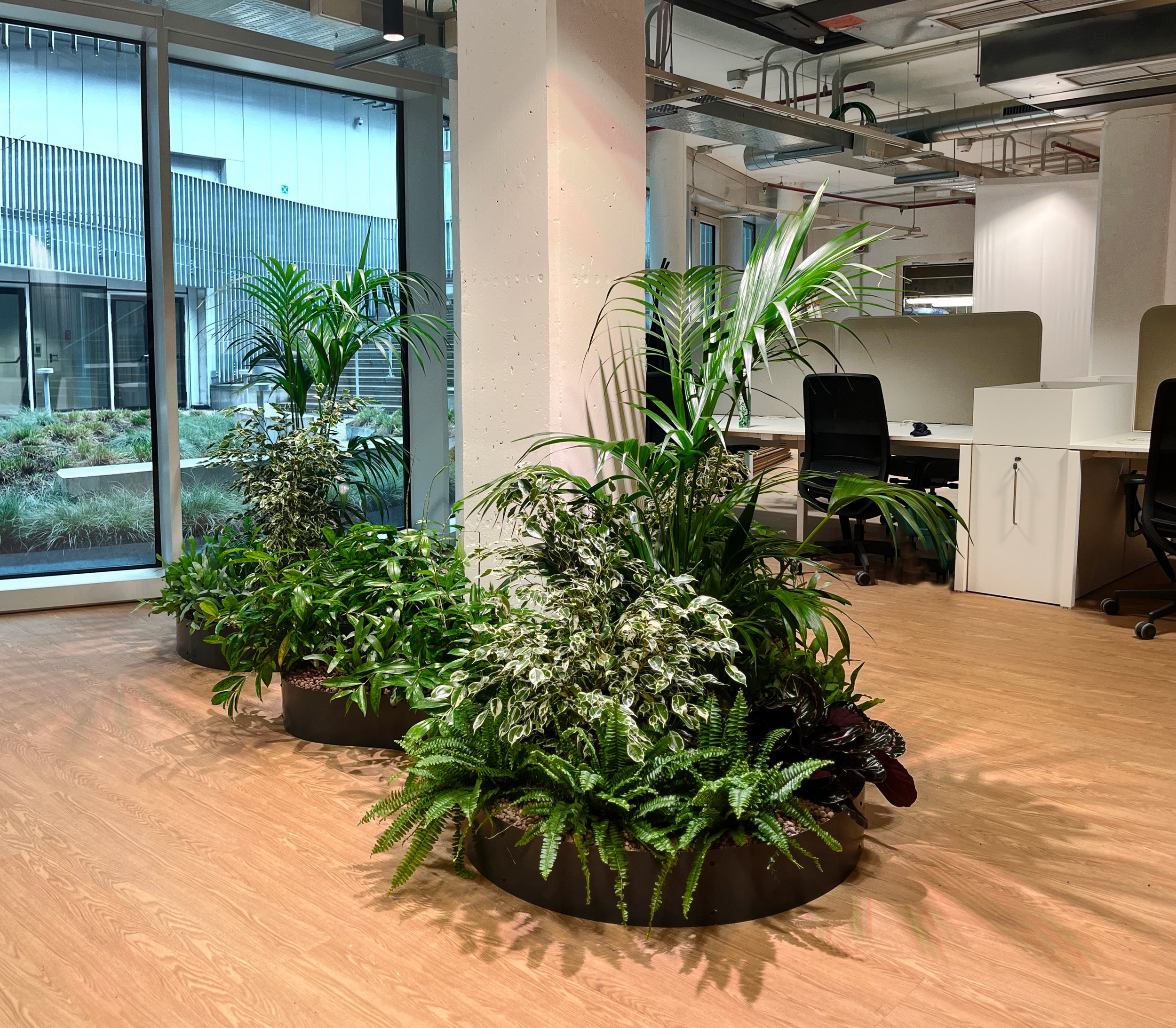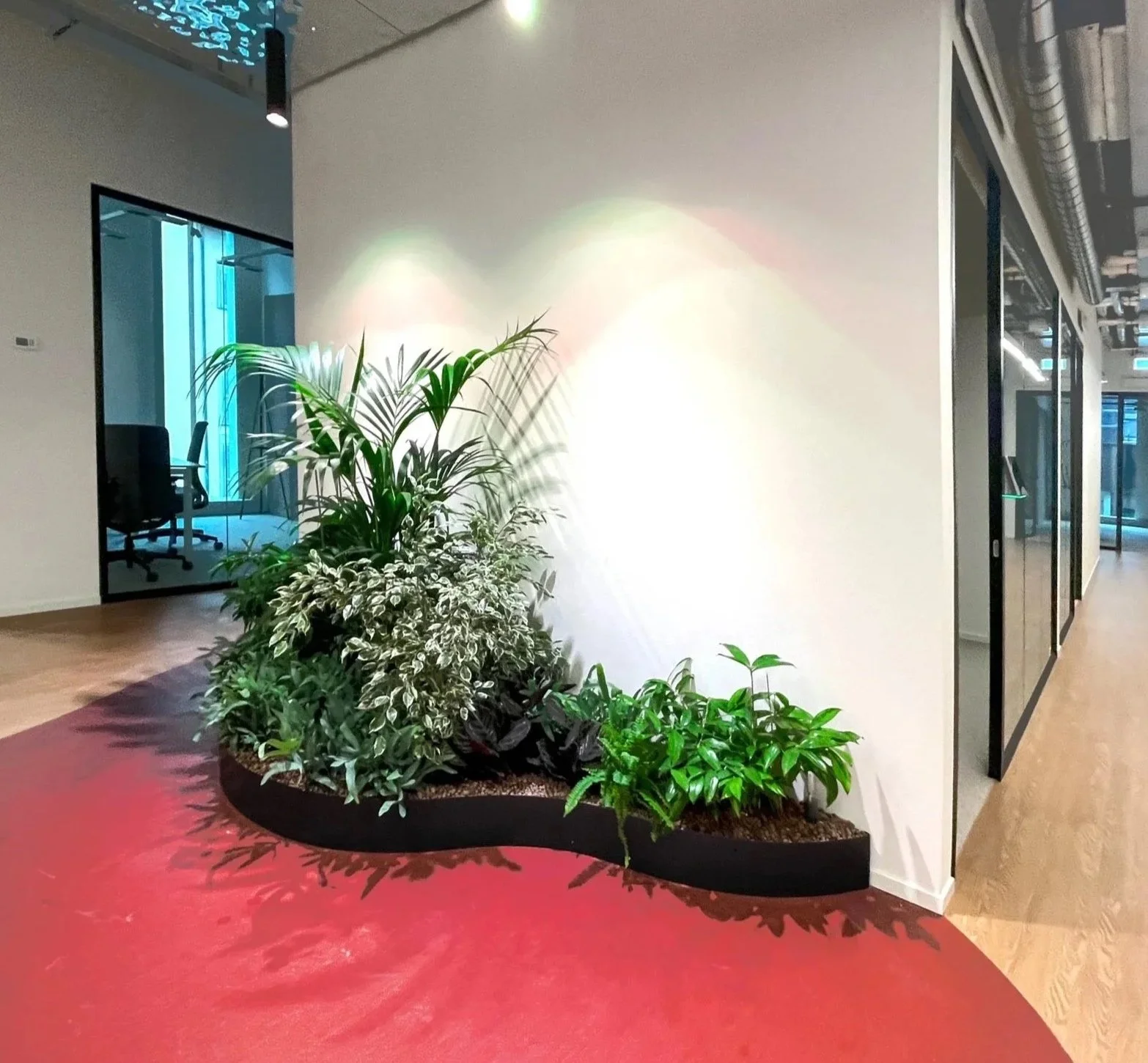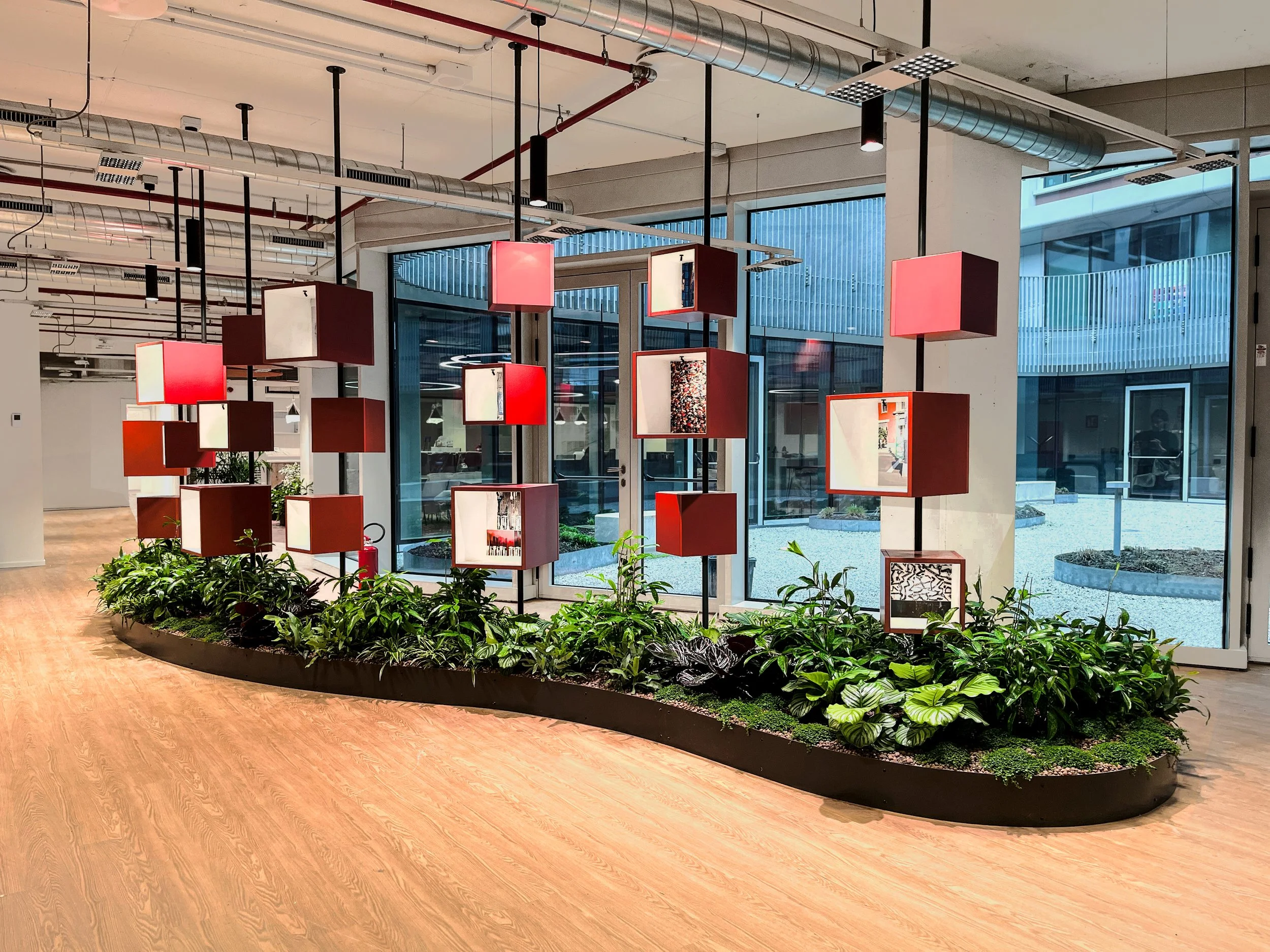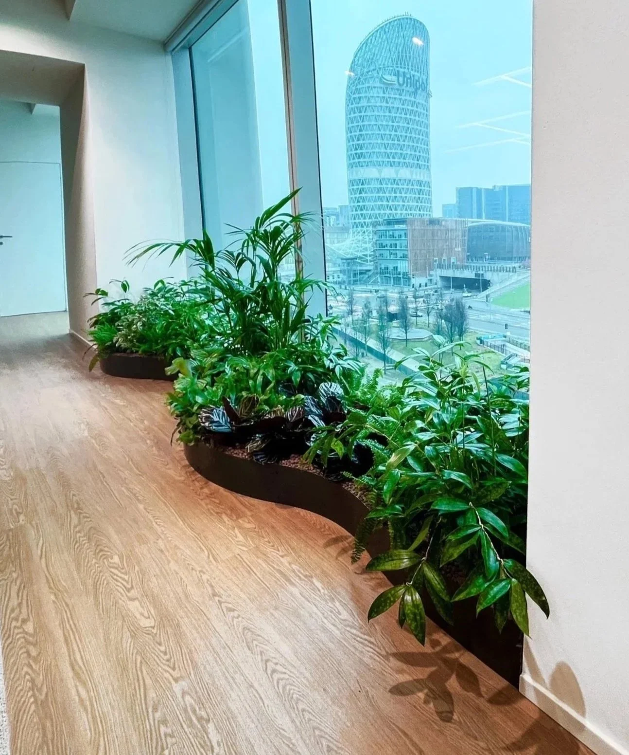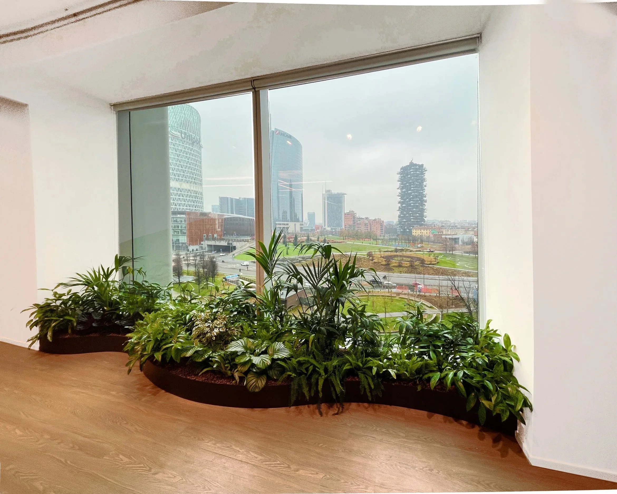 Accolte da una selezione di piante dalle suggestioni mediterranee, queste composizioni trasformano gli uffici in un paesaggio raffinato e armonioso, dove natura e architettura si incontrano. Un dettaglio di lusso discreto che dona carattere, atmosfera e una sensazione di quiete sofisticata agli ambienti di lavoro.